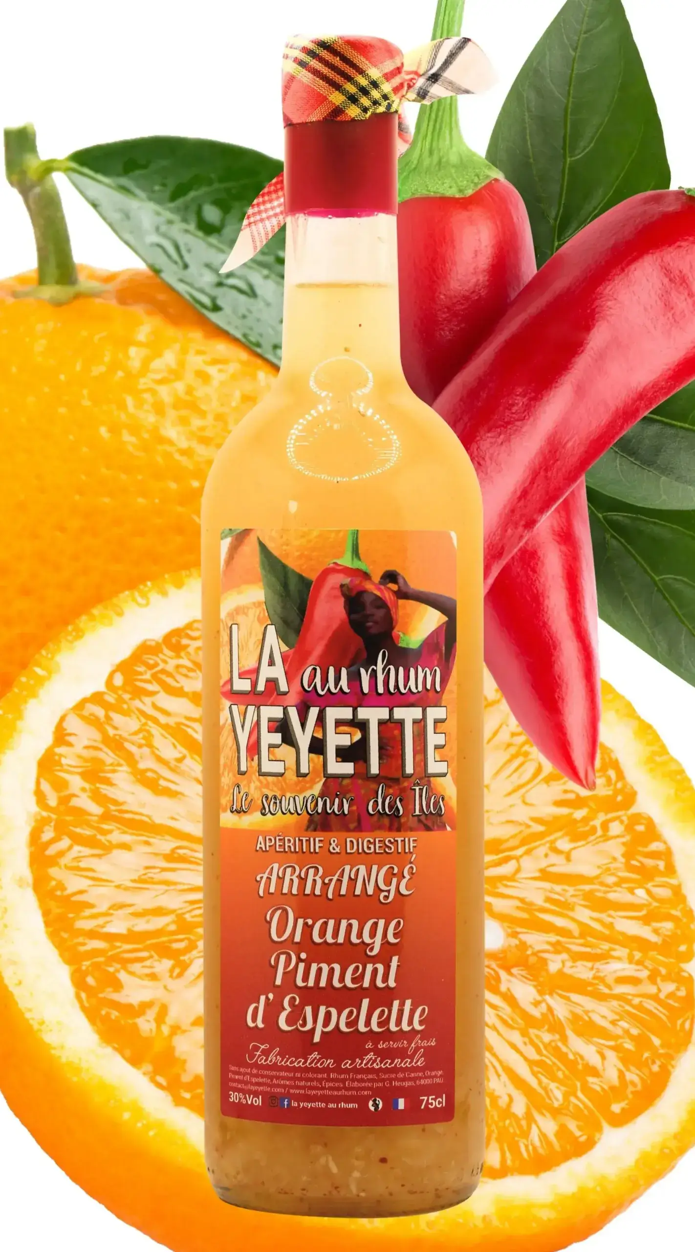 Rhum ArrangĂ©, La Yeyette au rhum, Orange, Piment d’Espelette, 30% vol. – 75 cl.